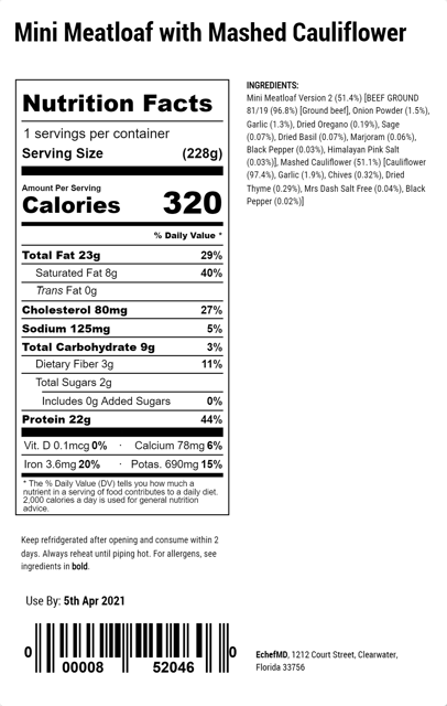 Mini Meatloaf with Mashed Cauliflower